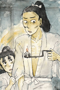 多分この後は、くせ者が幽霊に会ったと思って逃げ出すか、